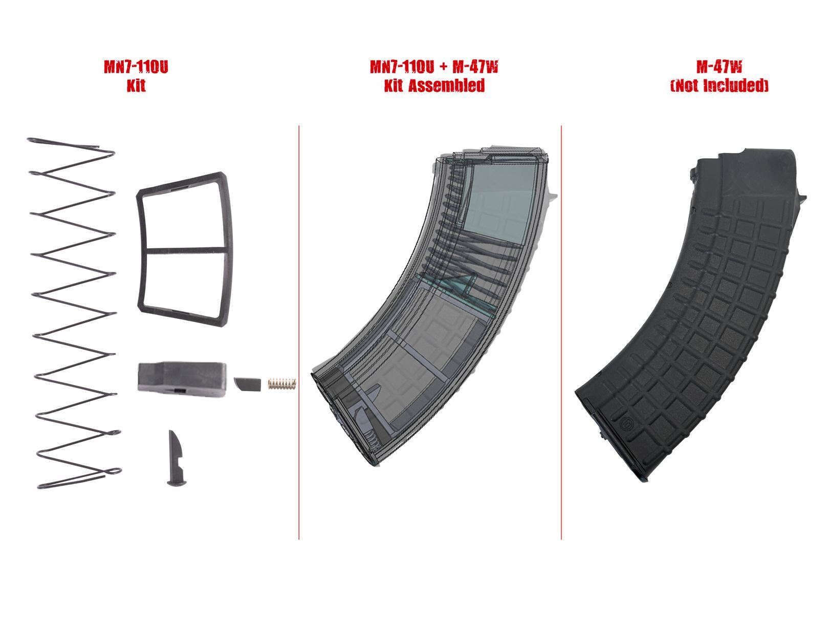 Arsenal 30rd to 10rd conversion kit. Contains all the parts needed to convert a 7.62x39mm 30 round magazine to a 10 round magazine.