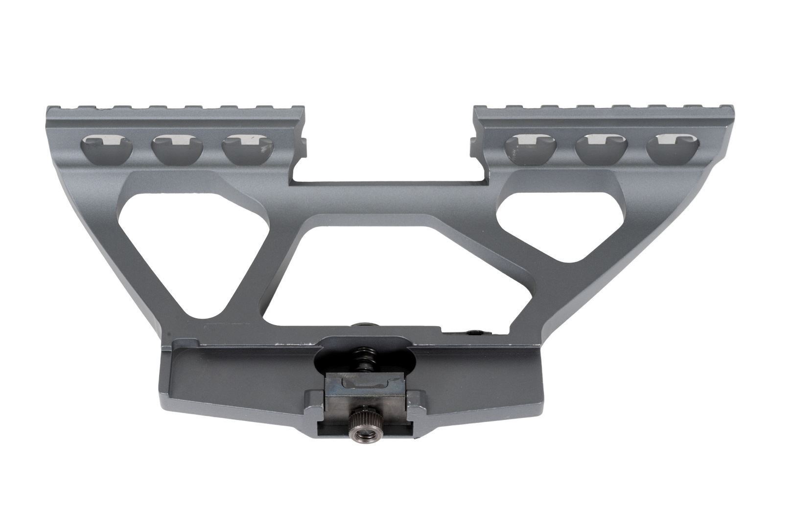 The SM-22G Gray Cerakoted scope mount is a lightweight aluminum side scope mount that works with Arsenal Milled SBR’s all SAM7K pistols the SAM7SFK and AR-M4SF as well as any model Arsenal with the rear peep sight centered on the dust cover. This model will also work on VEPR folding stock rifles that have interference issues with standard SM-13 scope mounts. These have 2.9 inches of Picatinny rail per section for a total of 5.8 inches of usable rail space. These are a low profile one-piece quick-release design with 7 picatinny slots forward of the rear sight and 7 picatinny slots behind the rear sight and are manufactured by Arsenal Inc. USA.