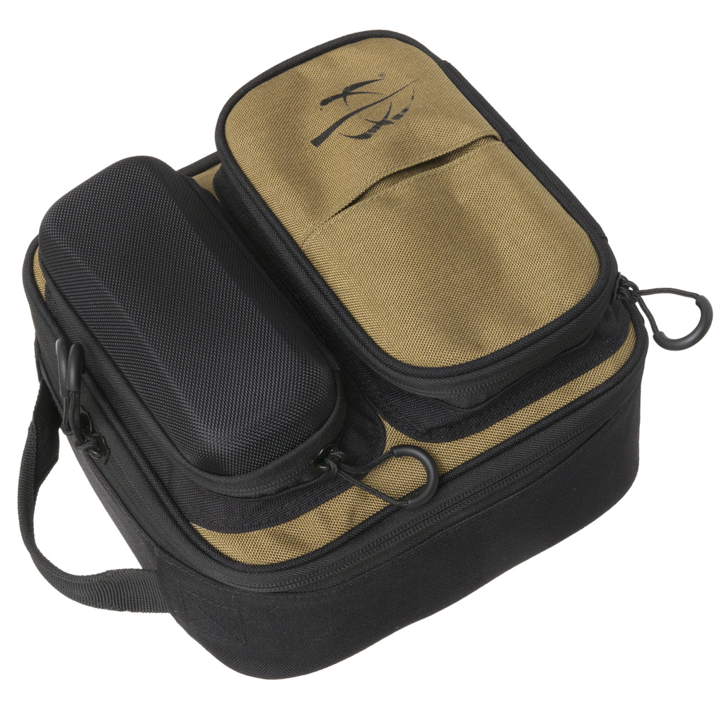 The REFLEX Shell Carrier is designed to hold up to 4 boxes of shot shell. The 7.5″ x 4″ dedicated storage pocket fits oversized ear protection and a hard-shell compartment protects safety glasses. Overall dimensions are 9″ x 9″ x 3″.