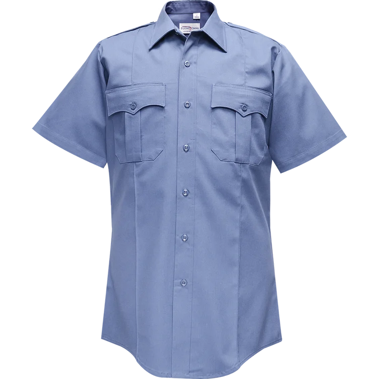 Created in a long sleeve style, this Deluxe Tropical shirt is made of 65% polyester and 35% rayon. The public safety shirt has a conventional band and collar and comes with a set of permanent collar stays to create a crisp look. This police shirt has a pencil stitch in the left breast pocket and offers a full badge sling for utility. Pleated pockets and scalloped flaps are included with Velcro closures. The shirt has a set of cross-stitched shoulder straps and a seven-button placket front for traditional appeal.